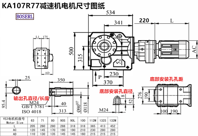 | 齒輪減速機 | KA109R79Y63M4 | KA109R79DRS132M4 | KA109RF79Y4KW |