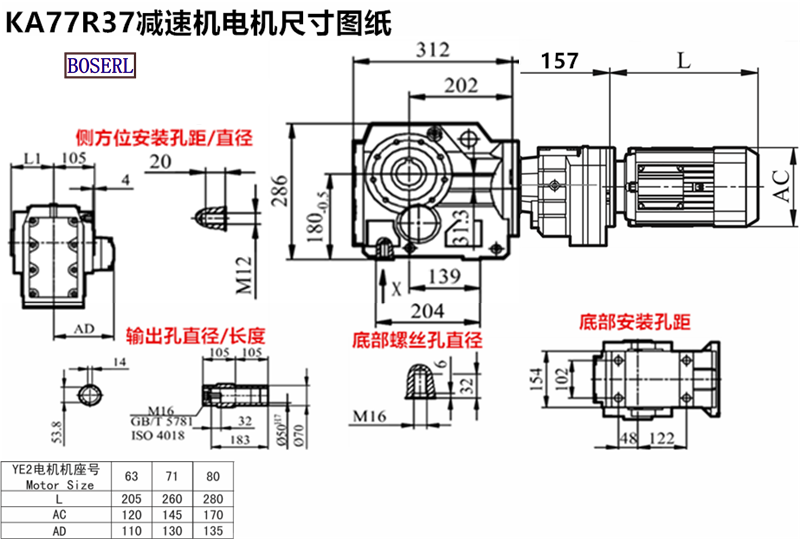 | 齒輪減速機 | KA79R39Y71M4 | KA79R39DRS71M4 | KA79RF39Y71M4 |